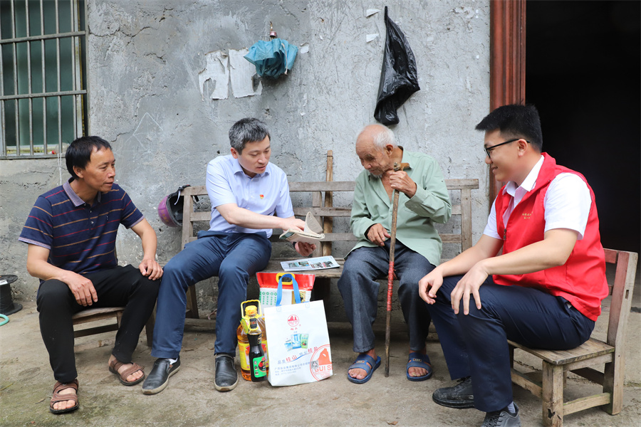 革命薪火代代相傳,紅色精神賡續(xù)不止。當天下午1點到達加龍村后,馬勤一行首先來到拉雷屯看望了抗美援朝老兵、現年92歲的老黨員覃乃勤。馬勤與老黨員覃乃勤親切交談,詳細詢問他的身體和家庭生活情況,感謝他為國家和社會做出的貢獻,向他傳達了黨組織的關心和關愛并送上慰問品,衷心祝愿覃乃勤身體健康、闔家幸福,切實將黨組織的關懷和溫暖送到老黨員的心坎上。