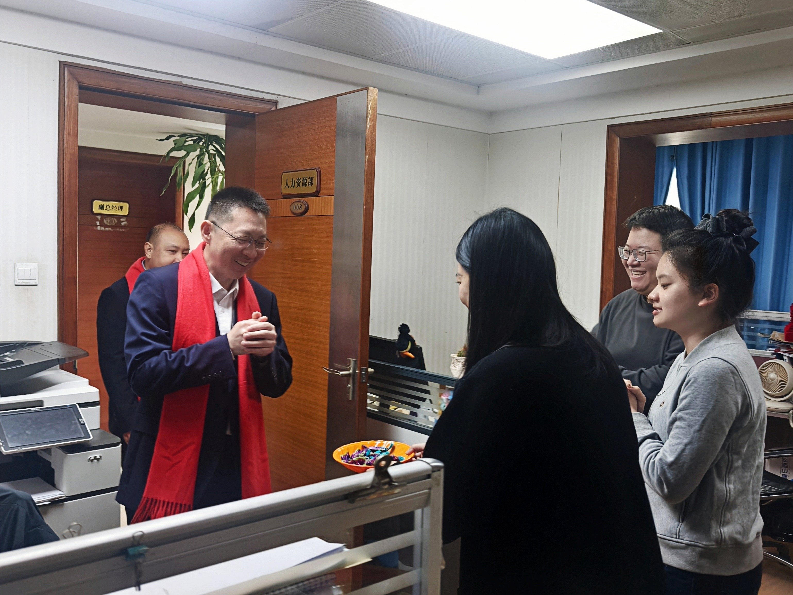 每到一處,領導們都向員工們送上新春的美好祝愿,關(guān)切詢問春節(jié)期間生活情況和節(jié)后返崗狀態(tài),對大家過去一年的辛勤付出表示感謝。聲聲祝福伴隨著歡聲笑語,現(xiàn)場洋溢著節(jié)后的溫馨與活力。