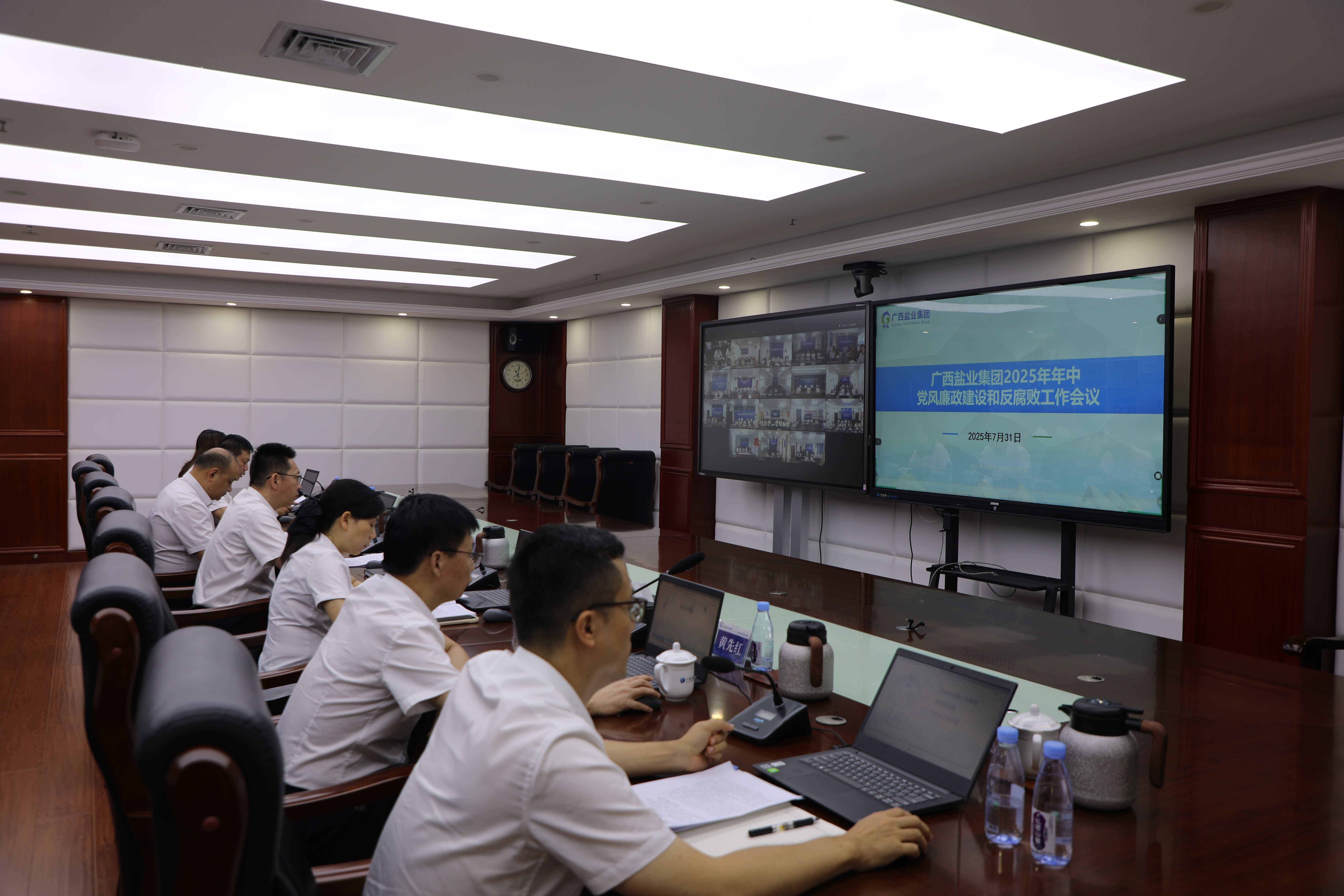 7月31日上午,廣西鹽業(yè)集團有限公司在桂鹽大廈四樓召開2025年年中黨風廉政建設工作會議。公司領導班子成員出席會議,紀委書記、黨委委員彭斌在會上作了題為《深化中央八項規(guī)定精神學習教育 落實風腐同查同治要求 以黨風廉政建設新成效賦能企業(yè)高質(zhì)量發(fā)展》的工作報告。